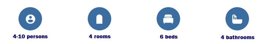 - Two large and spacious Double Rooms plus mezzanine area including an extra bed in each room sharing the same outside bathroom and a Front Sea View Balcony.